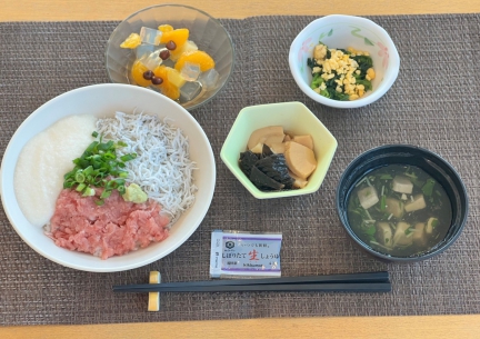 茨城県と言えば納豆ですよね!今回はまぐろ、おくらと混ぜ合わせてばくだん納豆でお出ししました。